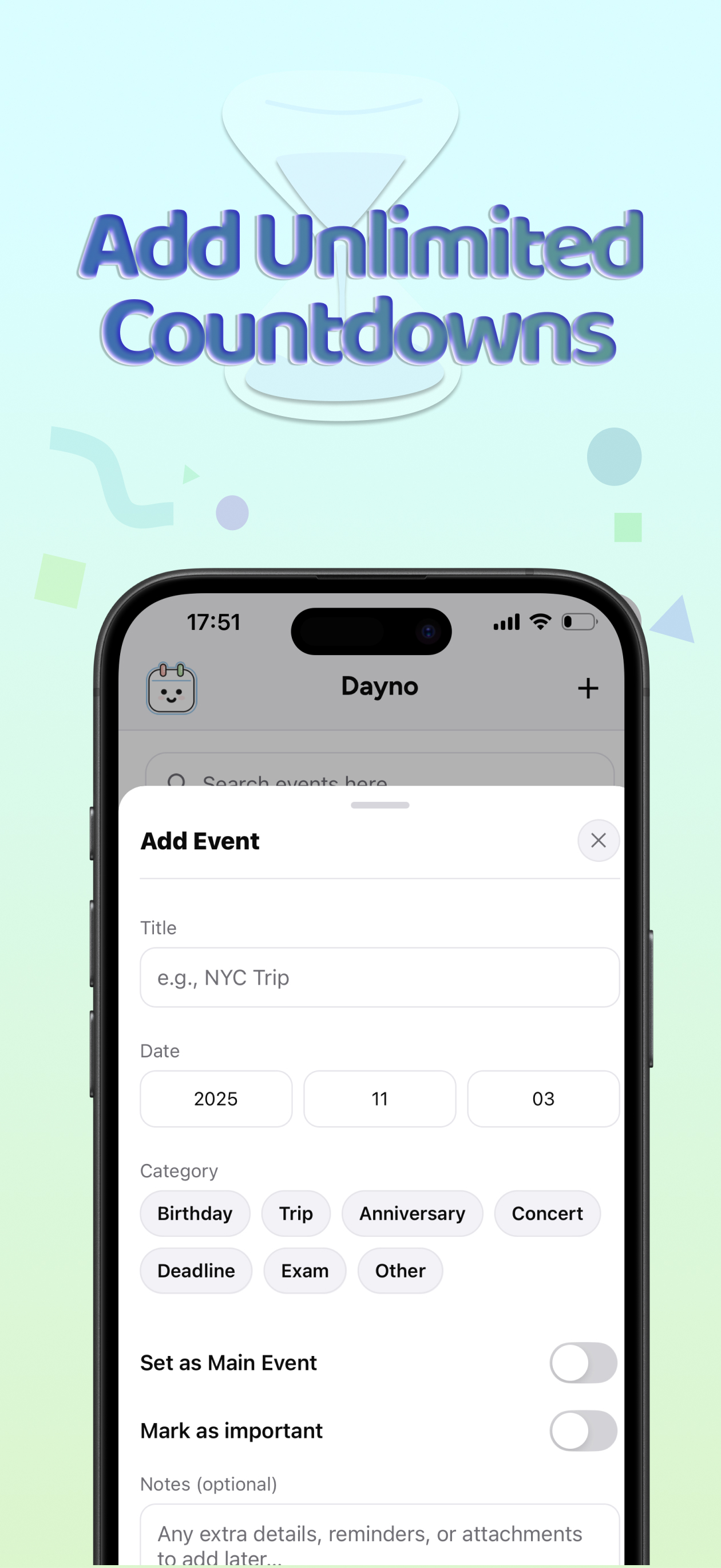A calm, modern planner that blends schedules, gentle reminders, and countdowns for life's big moments.